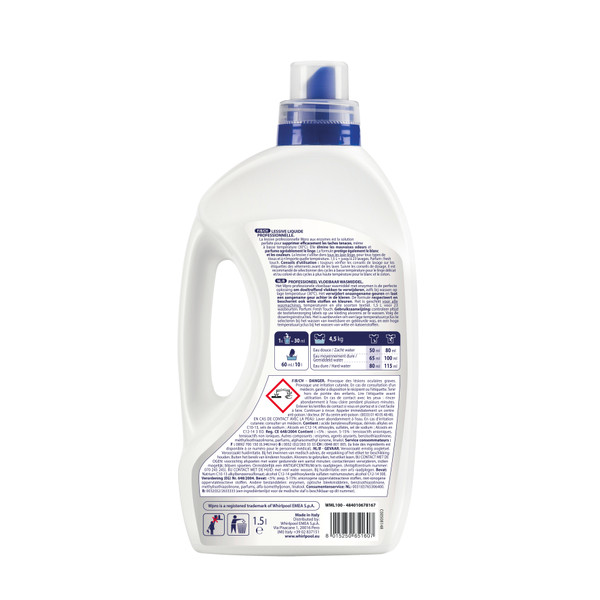 Wpron ammattimainen pyykinpesuneste entsyymeineen poistaa tehokkaasti sitkeät tahrat jopa alhaisissa lämpötiloissa (30 °C). Se poistaa epämiellyttävät hajut ja jättää vaatteisiin miellyttävän tuoksun. Koostumus suojaa myös valkoiset ja värilliset vaatteet. Se sopii kaikille pesukoneille, lämpötiloille ja materiaaleille. 1,5 litralla jopa 23 pesukertaa.