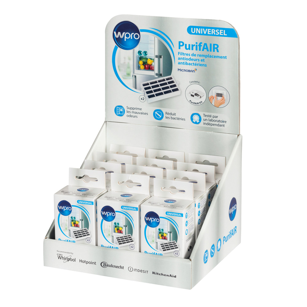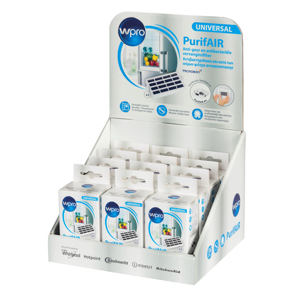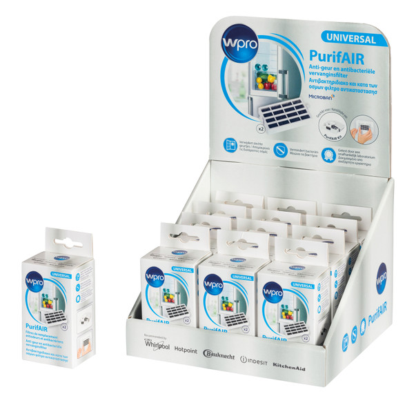 PurifAIR on innovatiivinen laite, joka pitää jääkaappisi raikkaampana ja hygieenisempänä. Ainutlaatuinen Microban®-teknologia suodattaa ja puhdistaa ilmaa tehokkaasti jääkaapin sisällä poistaen epämiellyttävät hajut ja suojaten jääkaapin sisältöä bakteereilta. Adsorptiotehonsa ansiosta suodattimen aktiivihiili vähentää keskimäärin 70 %* molekyyleistä, jotka muodostavat epämiellyttävää hajua. Aktiivihiili on käsitelty sinkkipyritionilla, joka vähentää bakteerimäärää 60 %*. Kun suodatin on vaihdettava, LED-merkkivalo syttyy (vaihtoa suositellaan kuuden kuukauden välein).