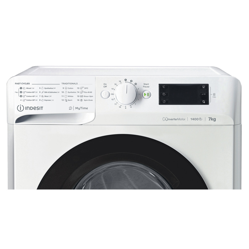 Tämän vapaasti sijoitettavan edestä täytettävän Indesit-pesukoneen ominaisuudet: suuri 7,0kg n kapasiteetti. Nopea ja resurssitehokas: linkous 1400 kierrosta minuutissa Valkoinen